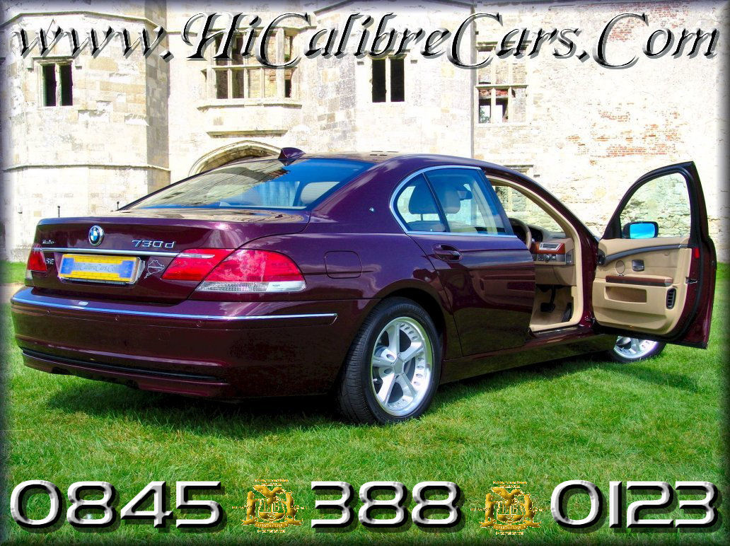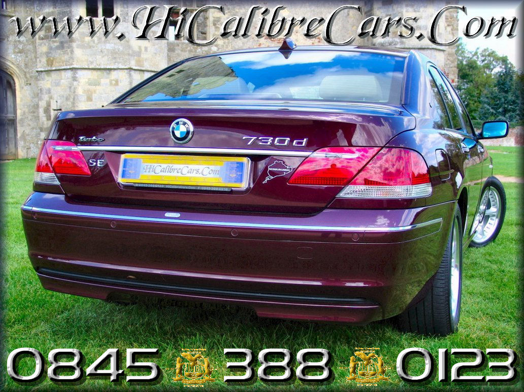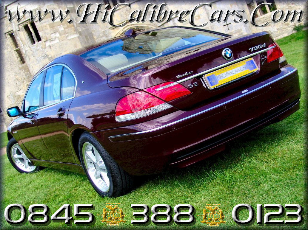 2005[55] BMW 730d SE Turbo-Diesel FaceLIFT 4 Door Saloon, 6 Speed Automatic. 3.0 Litre, In-Line_6 Cylinder 24-Valve DOHC Turbo-DIESEL, 231BHP. One Owner with F/BMW/S/H and with what can only be described as 13238 caring miles. This exquisite FaceLIFT model has been finished in rare and unmarked Barbera Red Metallic with unique and unblemished Cream-Beige NASCA Leather interior. There is no other car that can impress more in combining sporty comfort with luxury than the 730d Turbo SE FaceLIFT/ 1-OWNER. EXTENSIVE SPEC INCLUDES LATEST ELECTRONIC i-DRIVE SYSTEM, SATNAV PROFESSIONAL, New bespoke 5-prong polished Designer 18inch alloys/ ELECTRONIC i-DRIVE SYSTEM/ SAT-NAV PROFESSIONAL/ FRONT + REAR PARKING SENSORS WITH WIDESCREEN GRAPHIC DISPLAY/ BMW INDIVIDUAL OPTIONS WITH “BEST-VEHICLE” DESIGNATION/ DVD MULTIMEDIA EXTENSIONS & COLOUR SCREEN/ RAIN SENSORS + AUTO LIGHT ACTIVATION SYSTEM/ M-AERODYNAMIC BODY STYLING/ TEMPOMAT WITH BREAK FUNCTION/ PURE SILVER BMW 730d DESIGNO BADGING IN CABIN/ M-SPORT REAR SPOILER/ TRACTION CONTROL + ESP + ABS + EBD + DTC + ASC / DESIGNO BURR WALNUT DÉCOR TO INTERNAL CABIN AREAS/ BLUETOOH PHONE LOGON VIA I-DRIVE/ BLUETOOTH CAMERA PHONE/ FRONT BUMPER FOG + SPOT LIGHTS/ M-SPORT + M-TECH CHROME BADGING/ RAIN SENSORS/ DESIGNER M-TECH INTERIOR TRIM/ SERVO-TRONIC POWER STEERING/ BMW-ASSIST/ M-POWER MULTI-FUNCTION STEERING WHEEL/ BMW CONNECTED DRIVE-ASSIST-ONLINE SYSTEM/ HEATED FRONT SPORTS SEATS/ BMW-ASSIST/ LARGE VOLUME DIESEL TANK/ THE LIST GOES ON & ON. PLEASE ASK FOR COMPREHENSIVE SPEC SHEET AS WELL AS A PRESENTATION CD ON THE CAR. An incredible car with an unbeatable value.